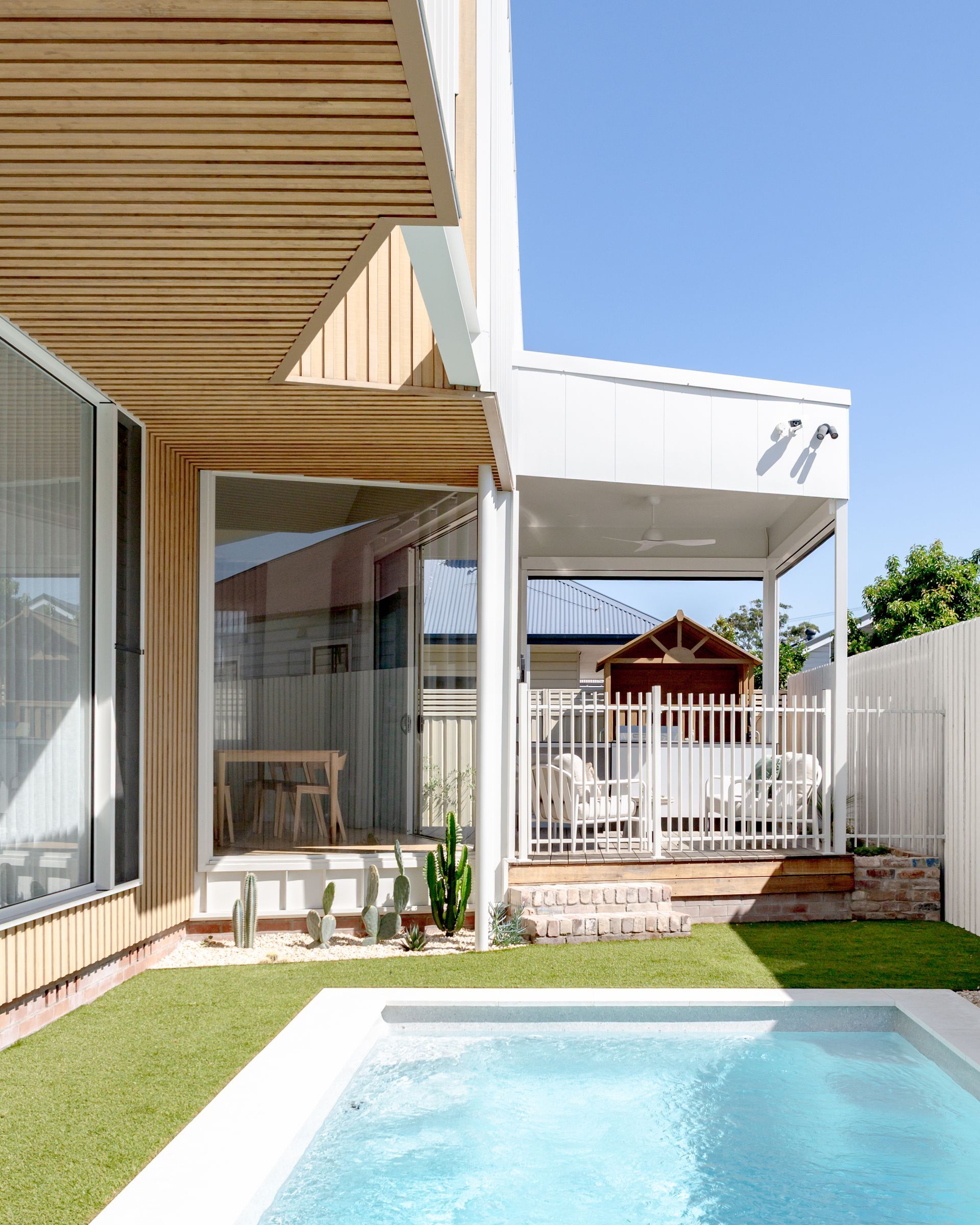 custom-designed inground pool becomes the centerpiece of the backyard, perfect for relaxed weekends and effortless entertaining.